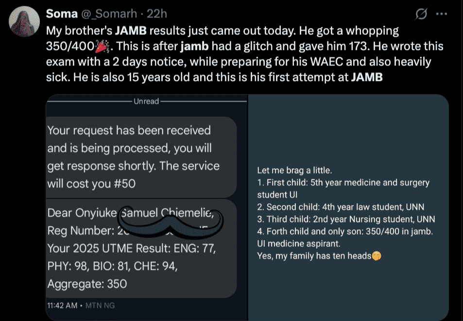 2025 JAMB Rescheduled UTME exam results are out. Read how candidates shared their results online with excitement and what they scored in the resit exam.